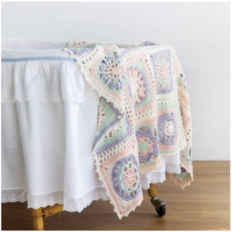 Le kit est composé des 14 pelotes nécessaires à la réalisation de la couverture, et d’une brochure d’information.