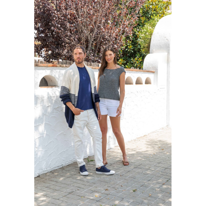 Points employés : côtes 1/1, jersey endroit, jersey envers, point de riz double