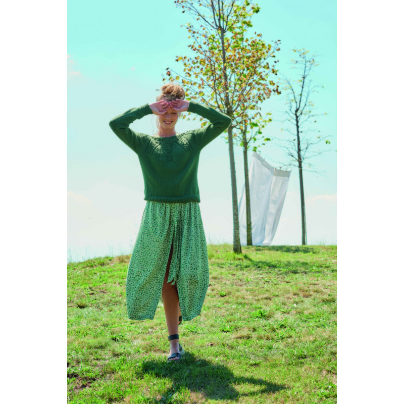 Points employés : jersey endroit en rond, côtes 1/1 en rond, magic loop, point ajouré, maille endroit torse